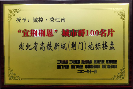 榮譽印證實力。由三峽晚報、三峽商報、荊州晚報、恩施日報、恩施晚報、荊門日報、荊門晚報、恩施新聞網(wǎng)、荊門新聞網(wǎng)等媒體聯(lián)合主辦,在湖北省范圍內(nèi)評選的“宜荊荊恩”城市群100名片企業(yè),城控?秀江南項目被授予“湖北省生態(tài)宜居典范樓盤”“湖北省高鐵新城(荊門)地標樓盤”榮譽。