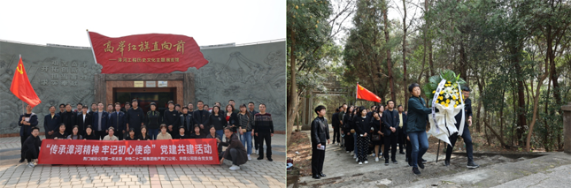 近日,市城控集團(tuán)直屬子公司市城投公司第一黨支部和中鐵二十二局集團(tuán)地產(chǎn)荊門公司、京琨公司聯(lián)合黨支部在漳河觀音寺烈士陵園開展了“傳承漳河精神,牢記初心使命”黨建共建活動,在追思緬懷、致敬先輩中增強(qiáng)黨性錘煉、銘記初心使命。