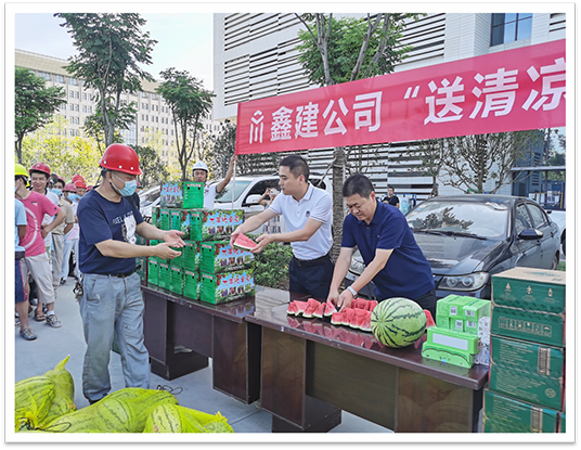 “這么熱的天,吃到你們送來的西瓜,這下干活更有勁了?!眰髅街行捻?xiàng)目施工員說道,“不僅有西瓜,還有藿香正氣液、風(fēng)油精、礦泉水等各種防暑降溫物資,鑫建公司關(guān)愛給了我們很大的鼓勵(lì),我們定不會(huì)辜負(fù)關(guān)懷,爭取早日實(shí)現(xiàn)項(xiàng)目竣工?!?/span>